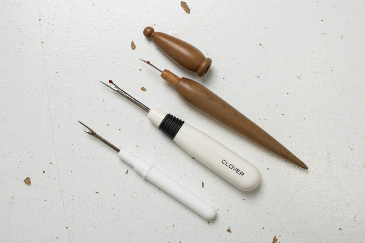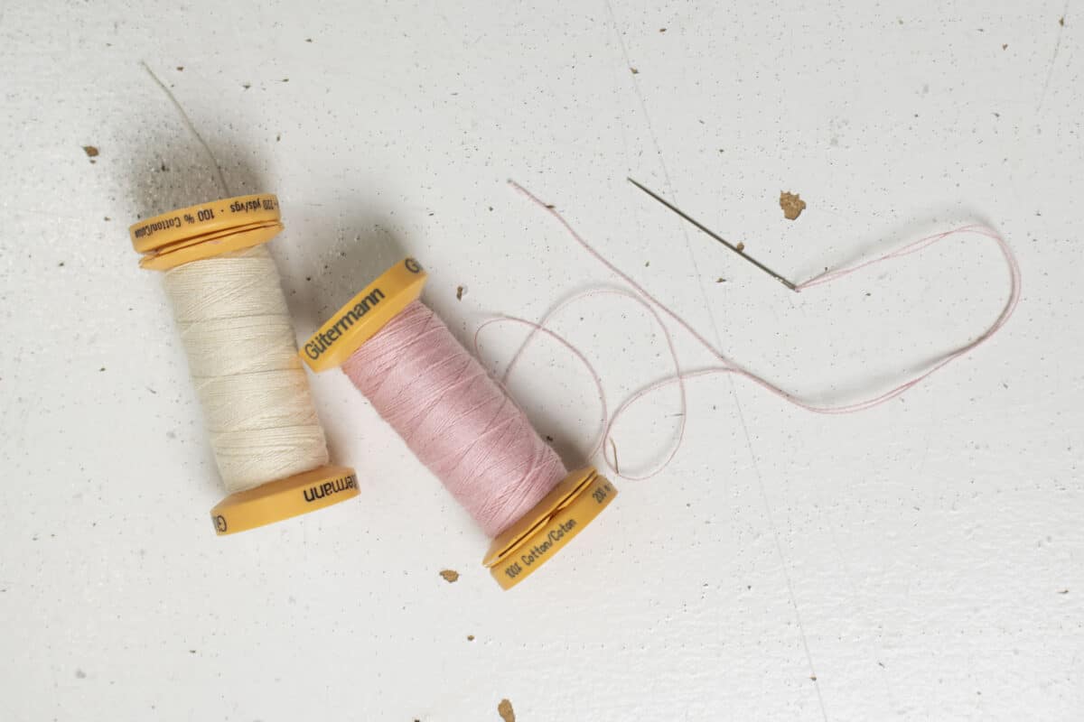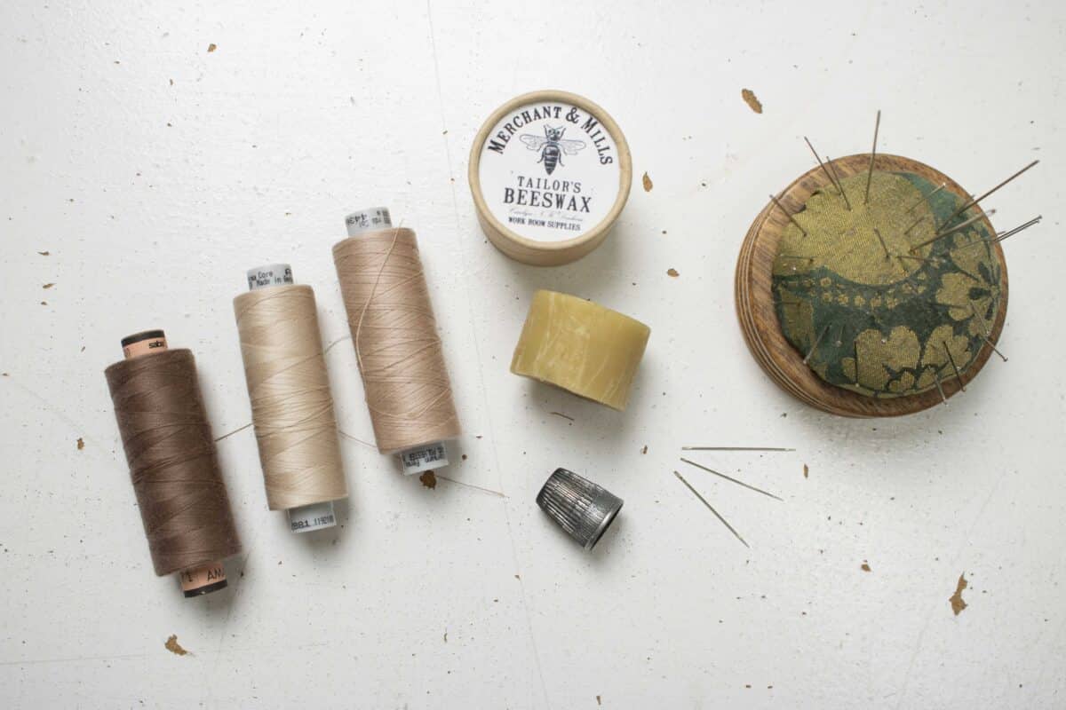 Det er vigtigt, at dine synåle til håndsyning er i god kvalitet, så de ikke skader stoffet. Jeg foretrækker synåle fra mærket John James. Køb en pakke blandede synåle eller en pakke Sharps str. 10 til almindelig håndsyning og en pakke Sharps str. 5 til risting og andet lidt grovere syning.