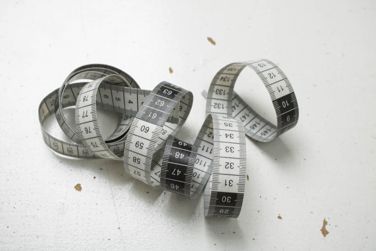 Målebåndet skal du bl.a. bruge, når du skal tage dine mål, men også til at kontrolmåle symønstre og måle afstande. Nogle målebånd har centimeter på den ene side og tommer (inches) på den anden side. Nogle har millimeter angivelser i hele målebåndets længde, mens andre kun har det de første 10-20 cm. Nogle målebånd starter fra 1 i samme ende på hver side af målebåndet, mens andre starter i den modsatte ende. Prøv dig frem, til du finder et målebånd, du kan lide at bruge.