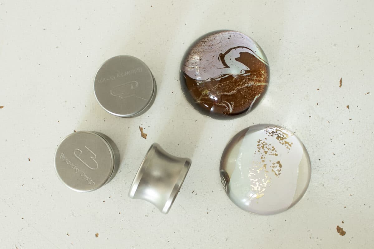 Se dine mønstervægte som en ekstra hånd, der kan hjælpe dig med at holde papir eller stof på plads. Hvis mønstervægte for alvor skal være effektive, skal de veje 400-500 g stykket og helst ikke have en større flade end 4-5 cm. Laver du dine egne, fx ved at fylde en lille stofpose, skal du sørge for, at det, du fylder i, er tungt nok. Risposer, strandsten og små lodder er populære som mønstervægte, men ofte er de ikke tunge nok til rigtig at holde noget. Jeg bruger mønstervægtene, både når jeg tegner mønstre af på mønsterpapir, og når jeg klipper mønstrene i stof. Ofte kombinerer jeg mønstervægte og knappenåle.